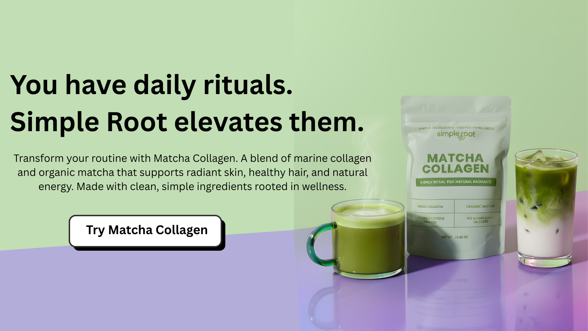 At Simple Root, we blend organic matcha and grass-fed collagen with purpose - not trends. Backed by research, made with care, and always free from fillers or fluff.
